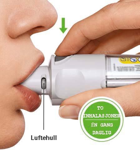 Du behøver bare å bruke denne inhalatoren ÉN GANG DAGLIG. Du skal ta TO INHALASJONER hver gang du bruker den.