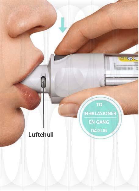 Du behøver bare å bruke denne inhalatoren ÉN GANG DAGLIG. Du skal ta TO INHALASJONER hver gang du bruker den.