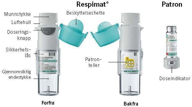 Merk: Tester har vist at Respimat gjenbruksinhalator fungerer for 540 inhalasjoner (tilsvarende 9 patroner).