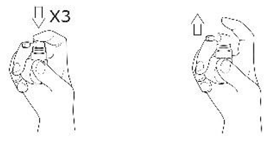 Trykk raskt på pumpen tre ganger, og påse at pumpen presses helt ned for hver gang. Løft fingeren opp fra toppen av pumpen mellom hver spray.