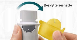 Sluttet du å vri på det gjennomsiktige endestykket før det sa “klikk”? Vri det gjennomsiktige endestykket med en kontinuerlig bevegelse til det sier “klikk” (1/2 omdreining). Doseindikatoren registrerer hver ufullstendig vridning og antall gjenværende doser reduseres.