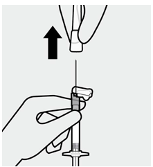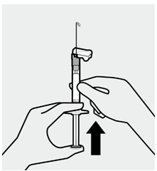 Hold sprøyten pekende oppover og slå lett for å få eventuelle luftbobler til å stige opp til toppen. Press stempelstangen langsomt og forsiktig oppover for å fjerne luft.
