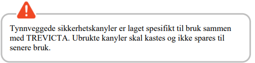 Tynnveggede (TW) sikkerhetskanyler er laget til bruk sammen med TREVICTA. Det er viktig å kun bruke kanylene som følger med i TREVICTA-pakningen.