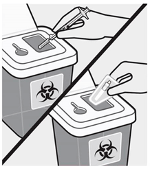 Kast sprøyten og ubrukte kanyler i en beholder for skarpe gjenstander.