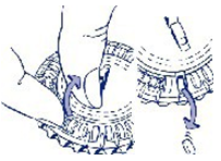 Neste dag dreies den gjennomsiktige ytre skiven med klokken en plass som vist med pilen. Vipp den neste tabletten ut. Husk å ta kun 1 tablett en gang daglig.