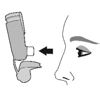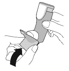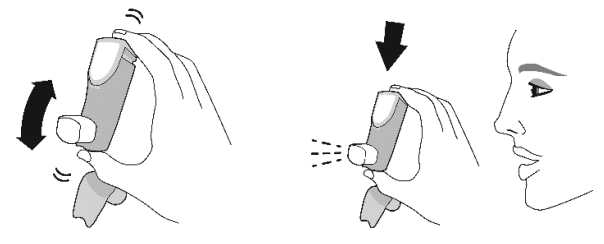 Begynn å puste inn dypt og sakte mens du sprayer 1 dose. Fortsett å puste inn så dypt du klarer.