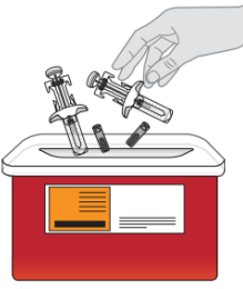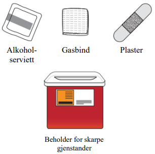 Ikke kast den brukte beholderen for skarpe gjenstander eller brukte sprøyter sammen med husholdningsavfallet.
