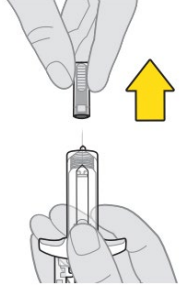 Fingerflensen skal ikke fjernes. Den gir deg bedre grep på sprøyten under injeksjonsprosessen.