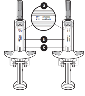 a. Sjekk utløpsdatoen på begge sprøytene (a).