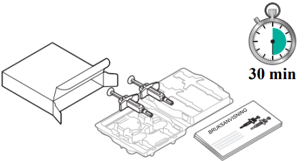 2. Ta 2 sprøyter ut av kjøleskapet og vent 30 minutter.