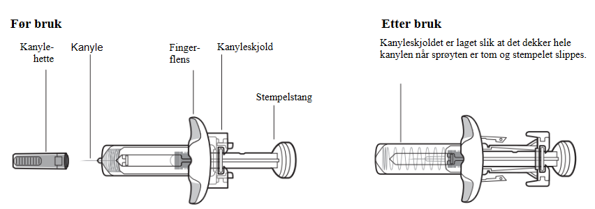 Hver sprøyte kan kun brukes én gang (engangsbruk). De kan ikke brukes om igjen.
