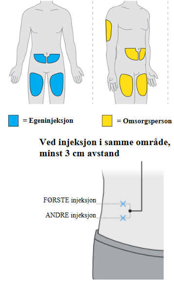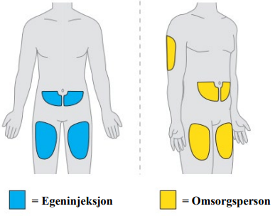 Ved egenadministrering eller hvis administrering utføres av en omsorgsperson, skal helsepersonell vise deg eller omsorgspersonen din hvordan sprøytene skal tilberedes og injiseres før du/dere skal bruke sprøytene for første gang. Kontakt apoteket eller behandlende lege dersom det er du eller omsorgspersonen din som setter injeksjonene og du/dere har glemt en dose eller har injisert bare én sprøyte.