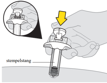 b. Skyv stempelet langsomt helt ned så langt det kommer for å injisere alt legemiddel.