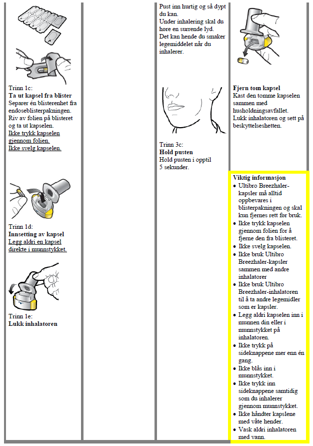 Når du starter på en ny pakning, skal du bruke Ultibro Breezhaler inhalatoren som følger med i pakningen.