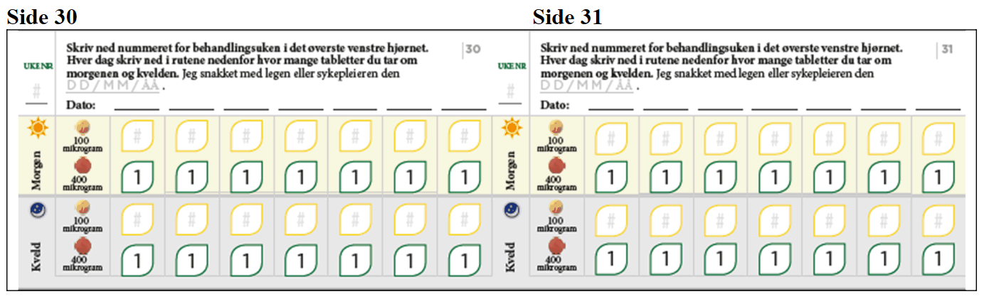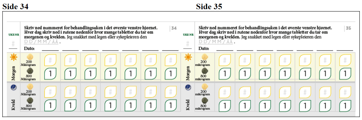Bruk dem til å skrive ned hvor mange tabletter du tar morgen og kveld.