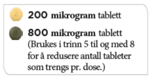 Dersom lege ber deg øke dosen ytterligere og gå til trinn 5, kan du gjøre det ved å ta én grønn tablett på 800 mikrogram og én lysegul tablett på 200 mikrogram om morgenen og én tablett på 800 mikrogram og én tablett på 200 mikrogram om kvelden.