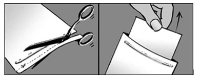 riv eller klipp opp posen langs den stiplede linjen