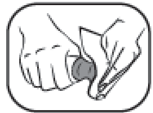 Bruk det stjerneformede sporet på siden av applikatoren for å fjerne tubens sikkerhetsforsegling.