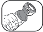 Se figur 1. Fjern forseglingen før førstegangsbruk ved først å fjerne det gjennomsiktige beskyttelsesdekslet og deretter skru av applikatoren. Bruk det stjerneformede sporet på siden av applikatoren for å fjerne tubens sikkerhetsforsegling. Sett applikatoren tilbake på tuben før du klemmer ut gelen.