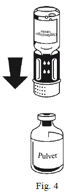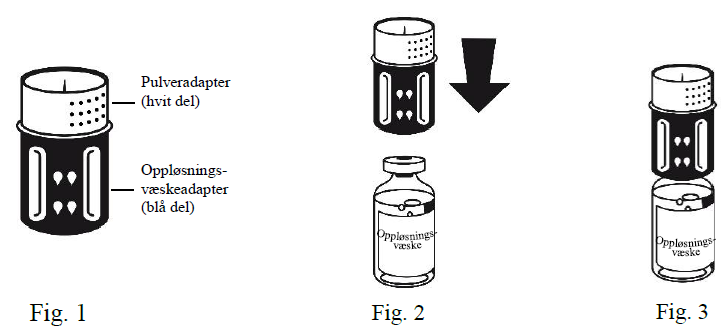 1. Ikke bruk preparatet direkte fra kjøleskapet. La oppløsningsvæsken og pulveret i de uåpnede hetteglassene få romtemperatur.