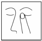 7. Etter å ha brukt Xalcom, trykk en finger mot øyekroken ved nesen (figur 4) i 2 minutter. Dette bidrar til å hindre at latanoprost og timolol kommer inn i resten av kroppen.