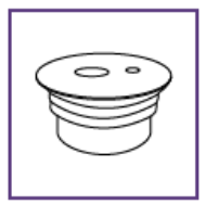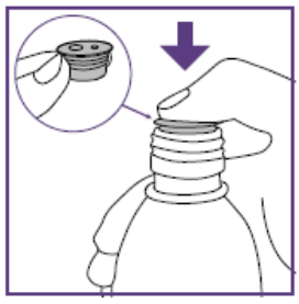 a. Hold flasken i en opprett posisjon. Før tuppen av den blå sprøyten helt inn i adapteråpningen