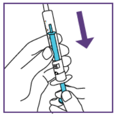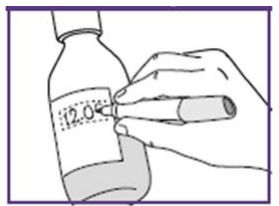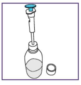 Etter å ha satt dosen kan den blå sprøyten brukes til alle administreringer fra flasken med suspensjon som ble klargjort i trinn 1.