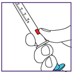 i. Press stempelet opp og inn i den blå sprøyten så langt det går.