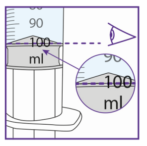 f. Press stempelstangen inn inntil den øvre ringen av stempelet når merket for 100 ml.
