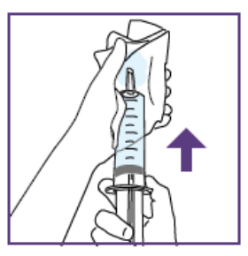 ➔Eventuelle luftbobler beveger seg til toppen når du holder sprøyten vendt oppover.