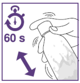 ➔Når det ikke er noen klumper eller bunnfall i flasken er suspensjonen klar til bruk.