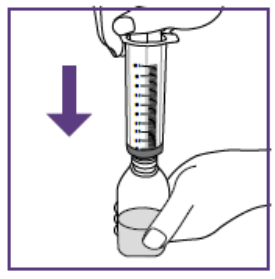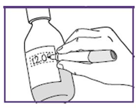 2. Trekke opp den forskrevne dosen (med hver nye blå sprøyte)For å unngå overdosering eller underdosering er nøyaktig dose suspensjon nødvendig.