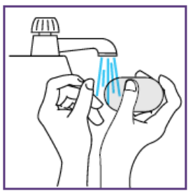 Den blå sprøyten må rengjøres etter hver gangs bruk.