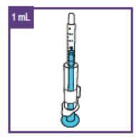 b. Pakk opp den blå 1 ml sprøyten.