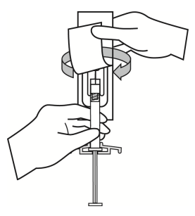 3. Hold sprøyten med sprøytehetten pekende oppover, fjern gummihetten med en lett vridning.