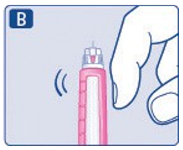 Knips forsiktig på toppen av pennen noen få ganger for at eventuelle luftbobler skal samle seg i toppen.