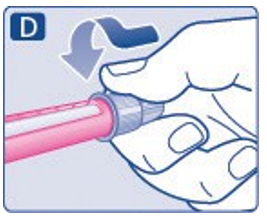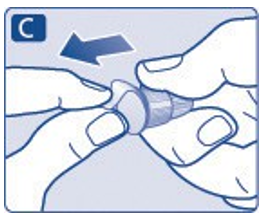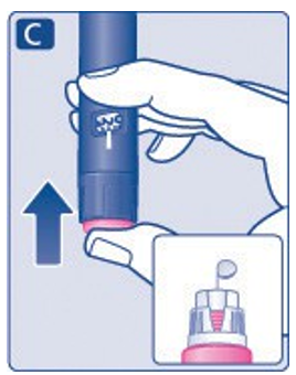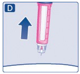 En liten dråpe kan være igjen på nålespissen, men den vil ikke bli injisert. Hvis ingen dråpe kommer til syne, gjenta trinn 2A til 2C opptil 6 ganger. Hvis fremdeles ingen dråpe kommer til syne, skiftes nål og trinn 2A til 2C gjentas én gang til.