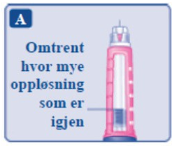 Det kan hende du kan se en dråpe oppløsning på nålespissen etter injeksjonen. Dette er normalt og har ingen innvirkning på dosen.