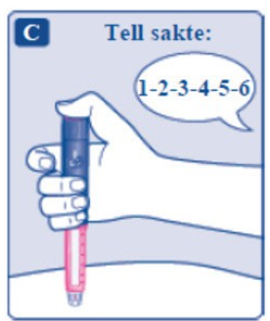 La nålen være i huden etter at dosetelleren har gått tilbake til 0, og tell sakte til 6.