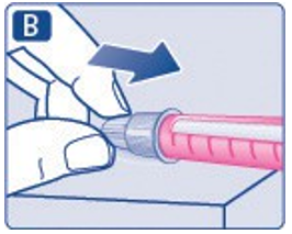 Fjern alltid nålen fra pennen etter hver injeksjon.Dette kan forhindre tette nåler, urenheter, infeksjon, lekkasje av oppløsningen og unøyaktig dosering.