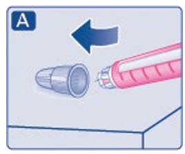 Ikke sett en ny nål på pennen før du er klar til å ta injeksjonen.