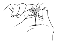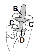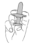 Trykk ikke på stemplet før du har ført munnstykket inn i neseboret. Ellers vil du miste dosen.