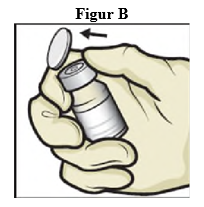 4. Ta plastlokkene av hetteglassene med ADZYNMA og fortynningsmiddel, og plasser hetteglassene på et flatt underlag (figur B).