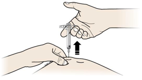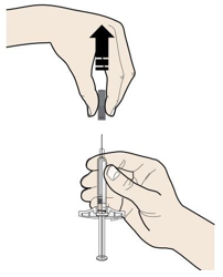 Når du er klar til å injisere, dra nålehetten rett av og vekk fra kroppen din.