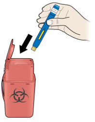Kast den brukte ferdigfylte pennen og den gule hetten.