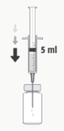 Fest en steril kanyle (18G × 11/2’’, 1.2 mm × 40 mm) med 5 mikronfilter (membran av akryl-kopolymer på non-woven nylon) på en 1 ml steril sprøyte (den sterile kanylen med 5 mikronfilter kan følge med i esken). Før deretter kanylen vertikalt gjennom midten av hetteglassets propp, mens hetteglasset holdes i stående posisjon.