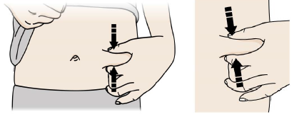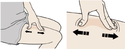 Viktig: Det er viktig at huden din holdes strekt eller klemt mens du injiserer.