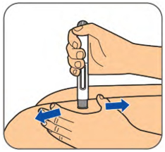 Strekk forsiktig ut huden på det rengjorte injeksjonsstedet. Hold pennen i en rett vinkel (90º) mot injeksjonsstedet.