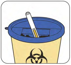 Ta kontakt med helsepersonell for instruksjoner om hvordan du skal kvitte deg med en full avfallsbeholder for skarpe gjenstander. Avfallsbeholdere for skarpe gjenstander kan kjøpes på apoteket.
