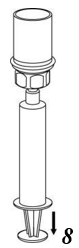 8. Mens sprøytestemplet holdes nede snur du systemet opp ned og trekker oppløsningen inn i sprøyten ved å trekke stempelet sakte ut.